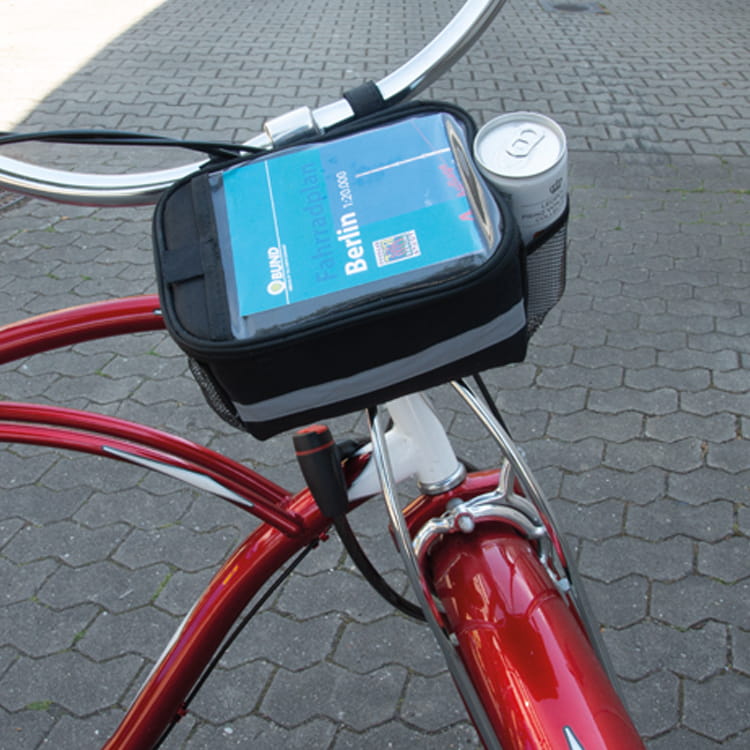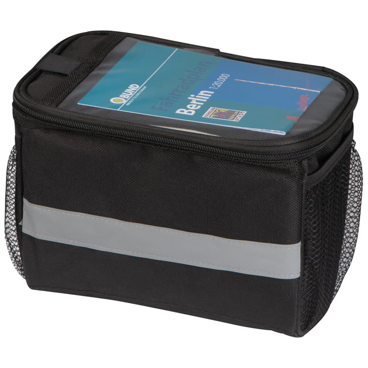 Zapinana na suwak torba rowerowa z odblaskowym paskiem z przodu i przezroczystą kieszenią na górze. Torbę można przymocować do kierownicy za pomocą trzech rzepów. Logotyp można umieścić bezpośrednio na produkcie.