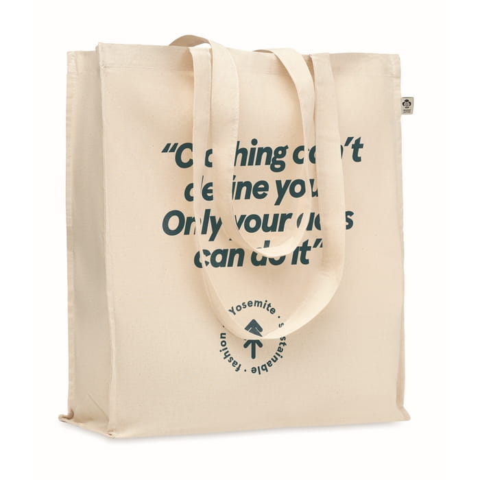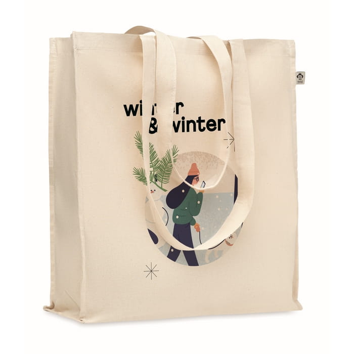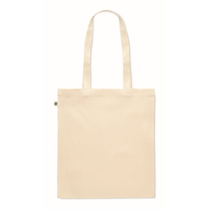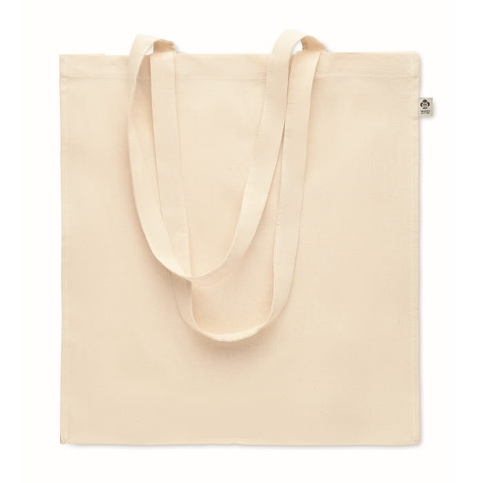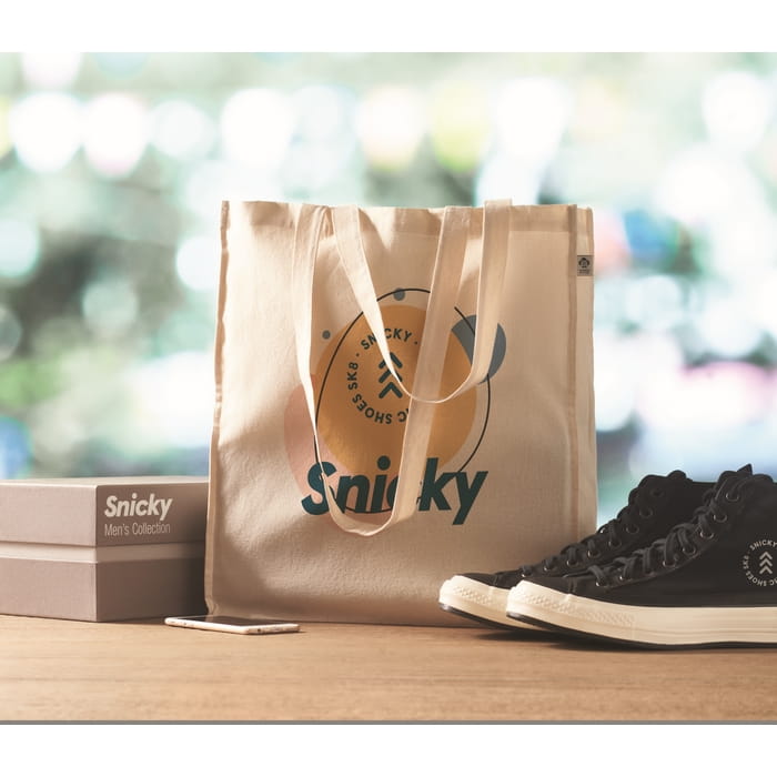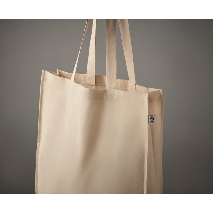 Torba na zakupy z bawełny organicznej z długimi uchwytami i klinami. 140 gr/m². Tę wygodną torbę możesz zabrać ze sobą na codzienne zakupy spożywcze lub wykorzystać w inny sposób. Długie rączki ułatwiają noszenie torby na ramieniu, a dzięki dodatkowym klinom możesz przenieść jeszcze więcej. Wykonanie z bawełny organicznej sprawia, że jest to wybór zgodny z zasadami zrównoważonego rozwoju!