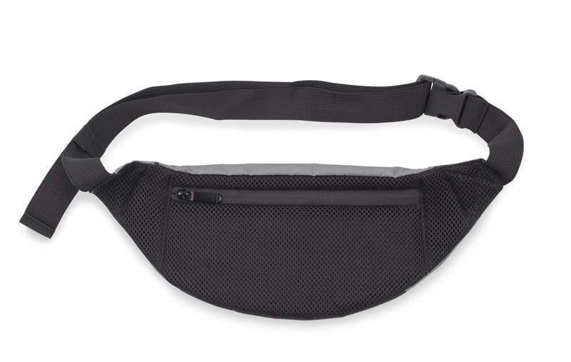 Torebka biodrowa MARTE to przydatny gadżet podczas biegania lub pieszych wędrówek. Wykonana z materiału odbijającego światło, zwiększa widoczność i bezpieczeństwo. Posiada jedną większą komorę i małą zewnętrzną kieszonkę – zapinane są one na zamek błyskawiczny. Wyposażona jest w folię zabezpieczającą przed kradzieżą danych z kart kredytowych, blokując sygnał RFID. Surowiec, to recyklingowany poliester rPET.