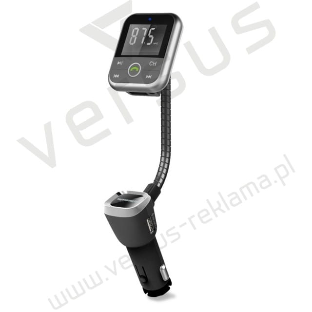 Nadajnik FM z wbudowanym portem USB oraz czytnikiem kart SD o pojemności do 32 GB i wejściem aux. Wystarczy podłączyć go do gniazda zapalniczki, wybrać częstotliwość FM i cieszyć się odtwarzaniem plików MP3, znajdujących się na karcie SD lub za pośrednictwem USB. Urządzenie zostało dodatkowo wyposażone w zestaw głośnomówiący.
