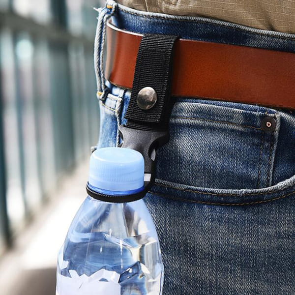 Uchwyt na butelkę przydatny w trakcie spacerów, wycieczek lub pracy na zewnątrz. Przy pomocy taśmy z rzepem z łatwością można przyczepić butelkę do szlufki od spodni, paska, plecaka czy roweru. Odpinana klamra umożliwi szybkie odczepienie i wczepienie butelki z powrotem. Sprawi, że woda będzie zawsze łatwo dostępna. Uchwyt pasuje do butelek PET ze standardową zakrętką (wody mineralne, napoje gazowane) o pojemności od 0,3 l do 2,5 l.