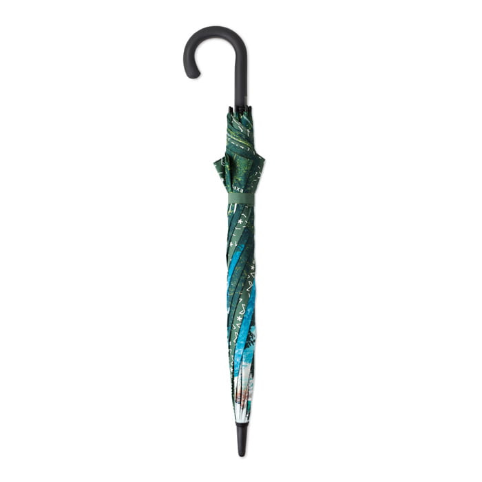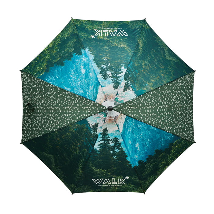 Ten parasol jest nie tylko praktyczny, dzięki dużej czaszy zapewniającej ochronę przed deszczem, ale także oferuje dużą powierzchnię dla unikalnych projektów w pełnym kolorze (jakość fotograficzna).