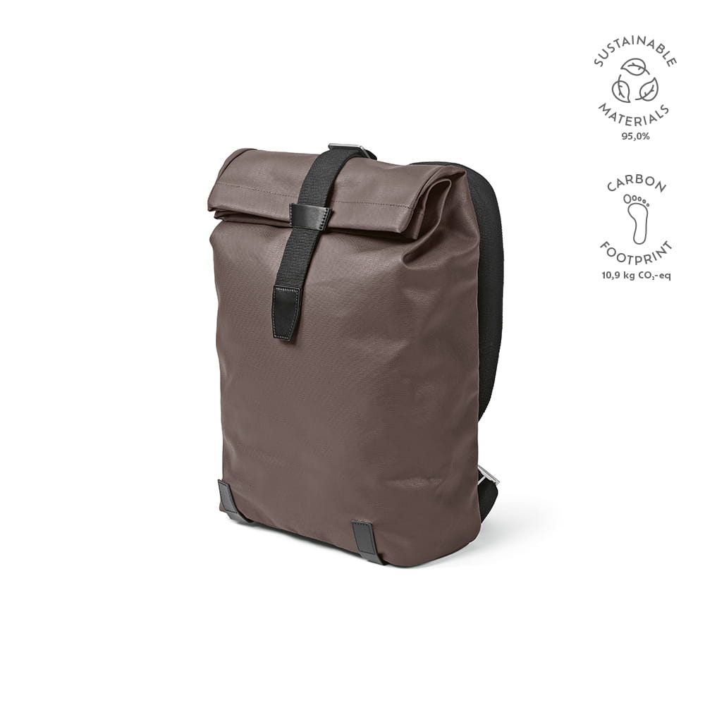 Ten wodoodporny plecak jest zgodny z zasadami zrównowazonego rozwoju: wykonany z bawelnianego plótna pochodzacego z recyklingu z powloka PU (340 gr) i detalami z PU pochodzacymi z recyklingu. Z wyscielana przegroda na laptopa (17") i 2 wewnetrznymi kieszeniami. Dostarczany w indywidualnej bawelnianej torbie z recyklingu.