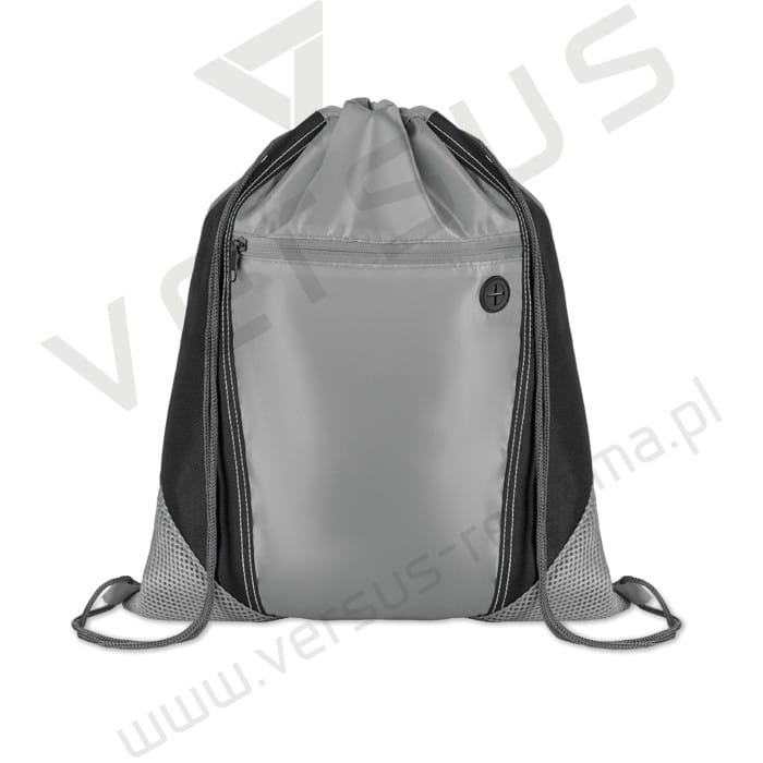 Worek z funkcja plecaka, zamykany na sznurek, z poliestru 210D i 600D. Elementy nylonowej siatki. Posiada dwie kieszenie główną na sznurek i małą na zamek.