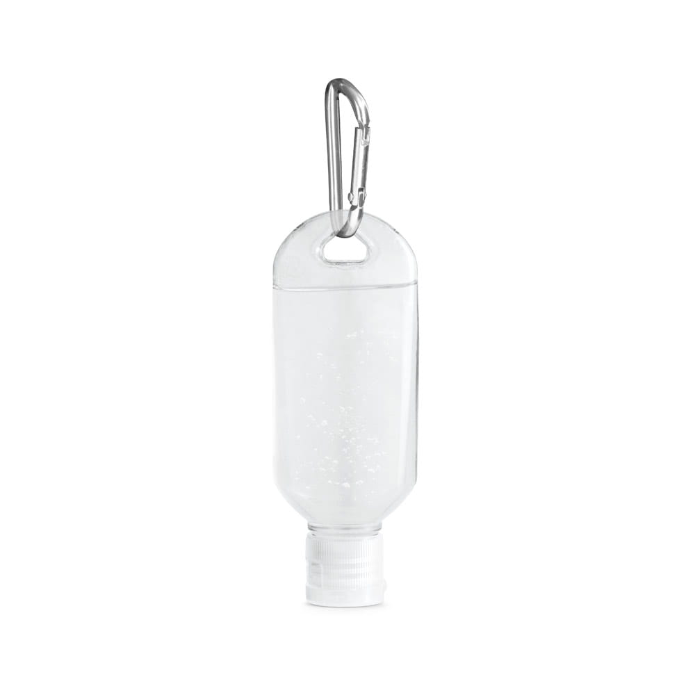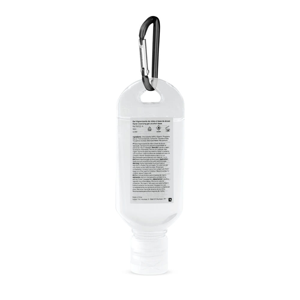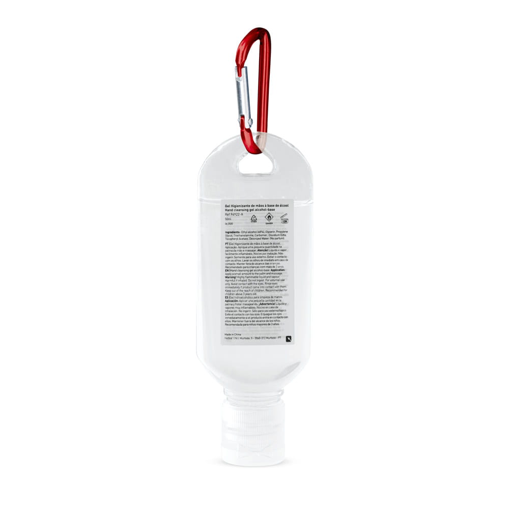 Żel do mycia rąk na bazie alkoholu w butelce PETG o pojemności 50 ml z zamknięciem typu flip top i karabińczykiem. Formuła z 68% alkoholem. Produkt kosmetyczny. Wygodny w użyciu bez względu na miejsce. Informacje prawne dostępne pod adresem: [PT | EN | ES | FR | IT | DE | CZ | SK]. 45 x 120 mm