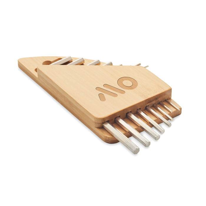 Zestaw kluczy sześciokątnych, imbusowych, w bambusowym uchwycie. Zawiera klucz sześciokątny ze stali węglowej z powłoką niklową o następujących rozmiarach: 1 ,5mm - 2mm - 2,5mm - 3mm - 4mm - 5mm - 5,5mm - 6mm. Idealny zestaw do majsterkowania w domu. Naturalny bambusowy uchwyt nadaje stylowego wyglądu i jest świetnym pomysłem na spersonalizowany prezent. Bambus jest produktem naturalnym, mogą wystąpić niewielkie różnice w kolorze i rozmiarze poszczególnych elementów, co może mieć wpływ na końcowy efekt dekoracji.