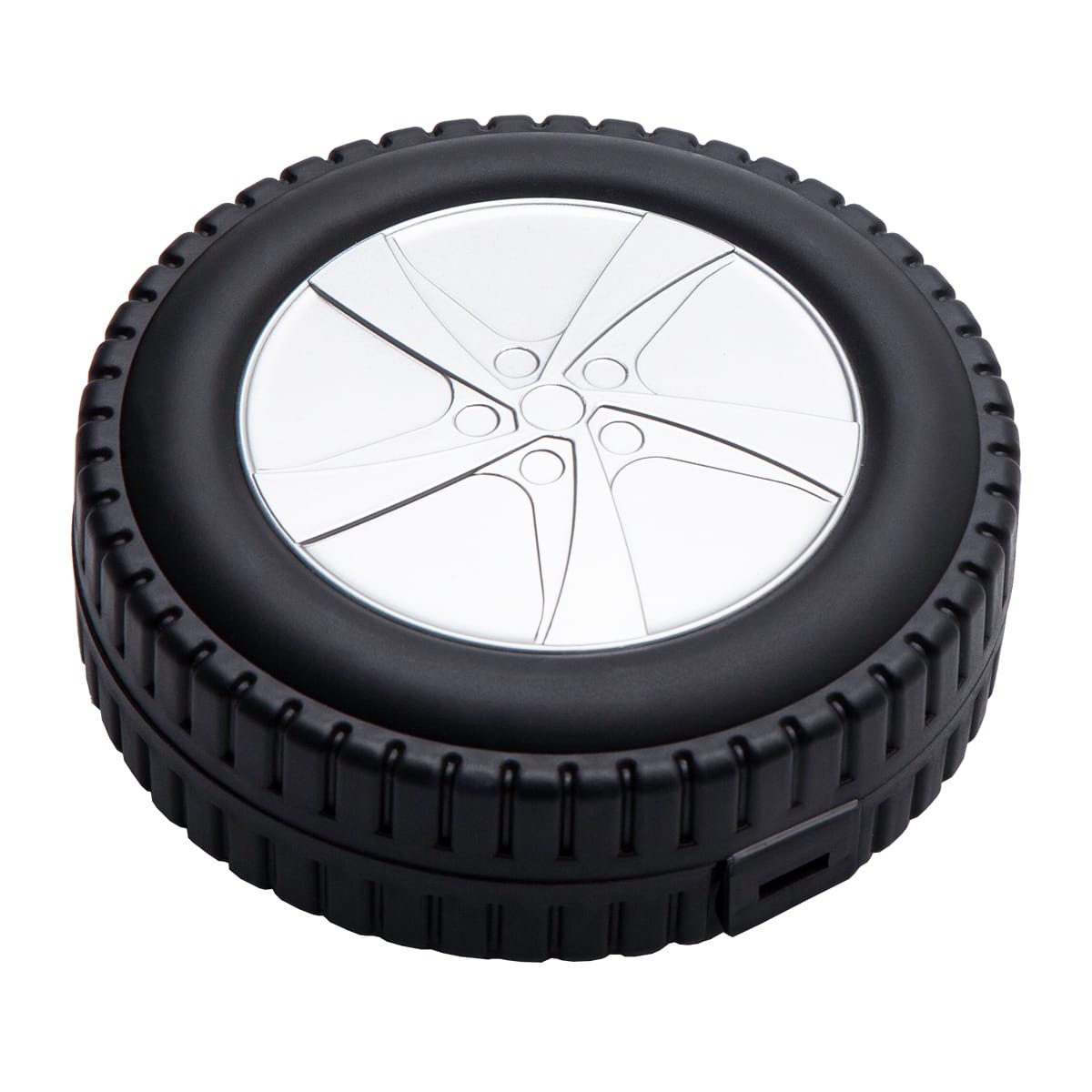 Zestaw 24 narzędzi w opakowaniu w kształcie opony samochodowej. Składa się z rączki, przedłużki, miarki, 2 śrubokrętów, 3 kluczy imbusowych, 5 kluczy nasadowych i 10 wkrętaków.